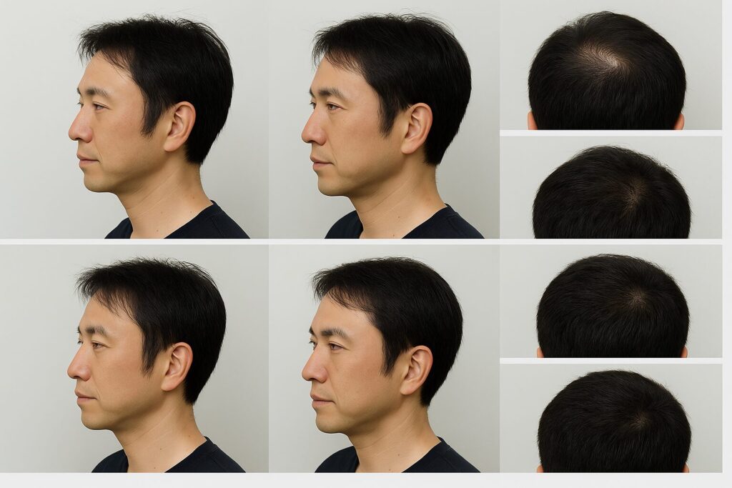 A. 進行度によりますが、抑制+発毛の設計で十分改善例はあります。3ヶ月で“写真差分”→6ヶ月で実感が王道。