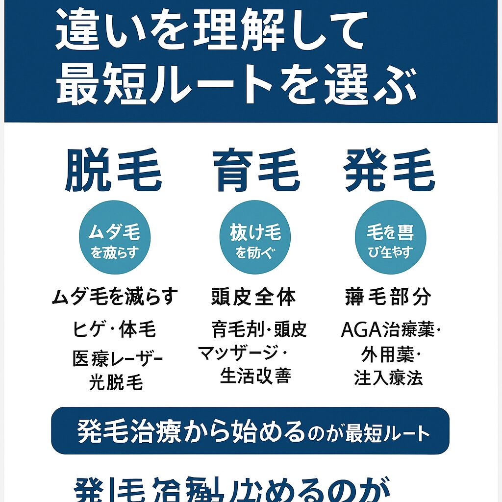 そんな方に向けて、脱毛・育毛・発毛の違いと、