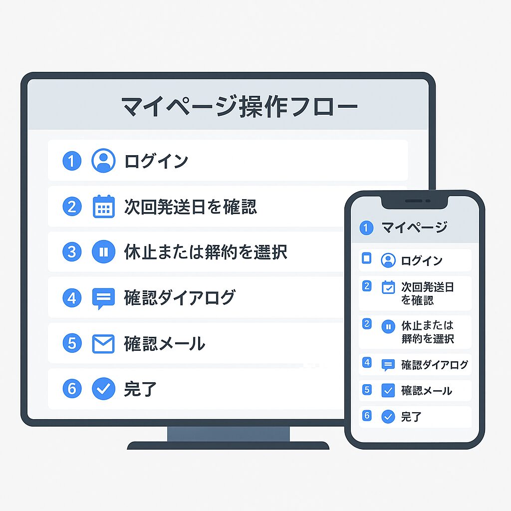 「次回発送◯日前」「違約金ゼロ」「マイページでワンクリック休止」——この3点が揃えば、始める不安は大きく減ります。