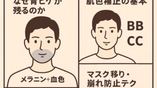 スキンケア 青ヒゲ・くすみを目立たなくする肌色補正術|メンズBBクリームで清潔感をプラス 青ヒゲやくすみを自然にカバーしたい男性必見。BB/CCクリームの違い、ナチュラルな塗り方、マスク移り・崩れ防止のコツまで徹底解説。脱毛後の印象アップにも。 2025.10.19 スキンケア