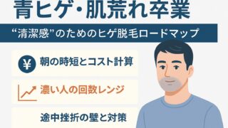 メンズ脱毛 青ヒゲ・肌荒れ卒業|“清潔感”のためのヒゲ脱毛ロードマップ 青ヒゲをなくすには何回必要?T字・電動シェーバーとのコスト比較、濃い人の回数レンジ、途中挫折の壁と対策まで。清潔感UPと朝の時短を両立する脱毛計画を紹介。 2025.10.18 メンズ脱毛