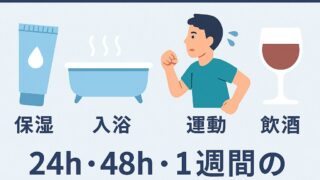 メンズ脱毛 照射後ケア完全版|保湿・入浴・運動・飲酒のタイムライン メンズ脱毛後は何時間・何日後から入浴や運動・飲酒ができる?24h・48h・1週間のやっていい/ダメ一覧、推奨保湿剤、埋没毛・色素沈着を防ぐケアまで徹底解説。 2025.10.18 メンズ脱毛