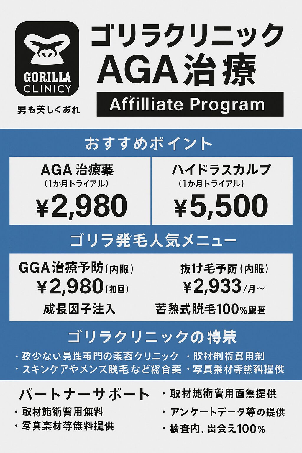 🔍 ゴリラクリニック AGA治療のおすすめポイント