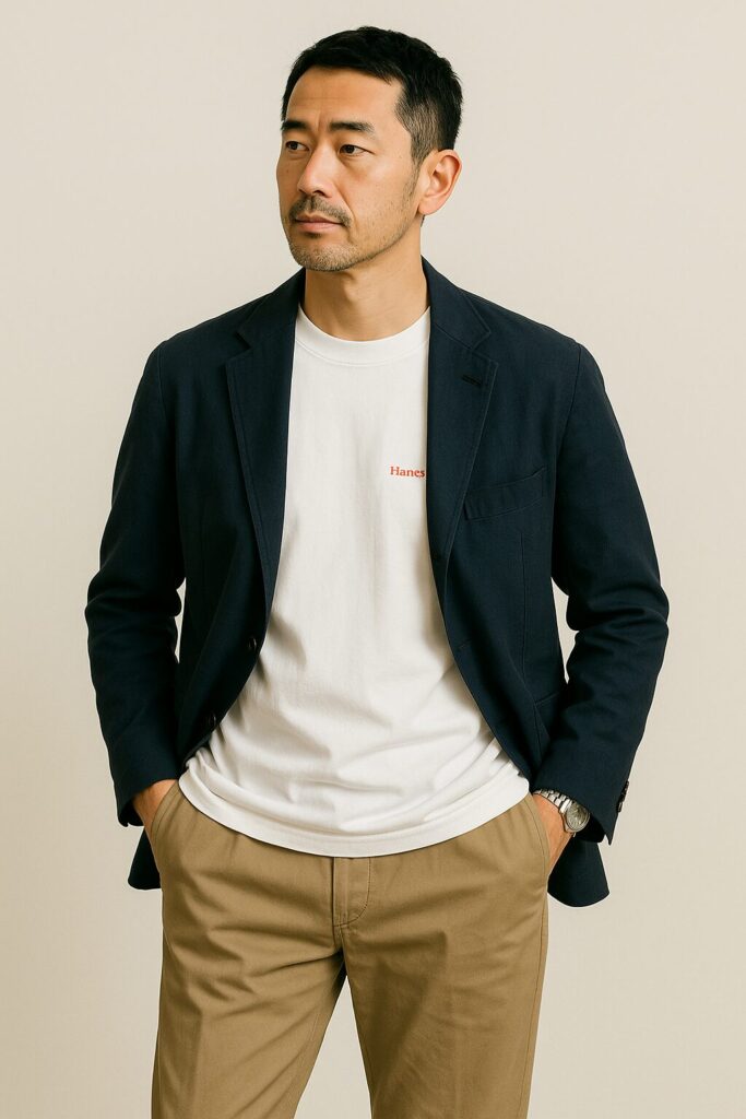 🧥コーディネート例:40代のヘインズTシャツ着こなし術