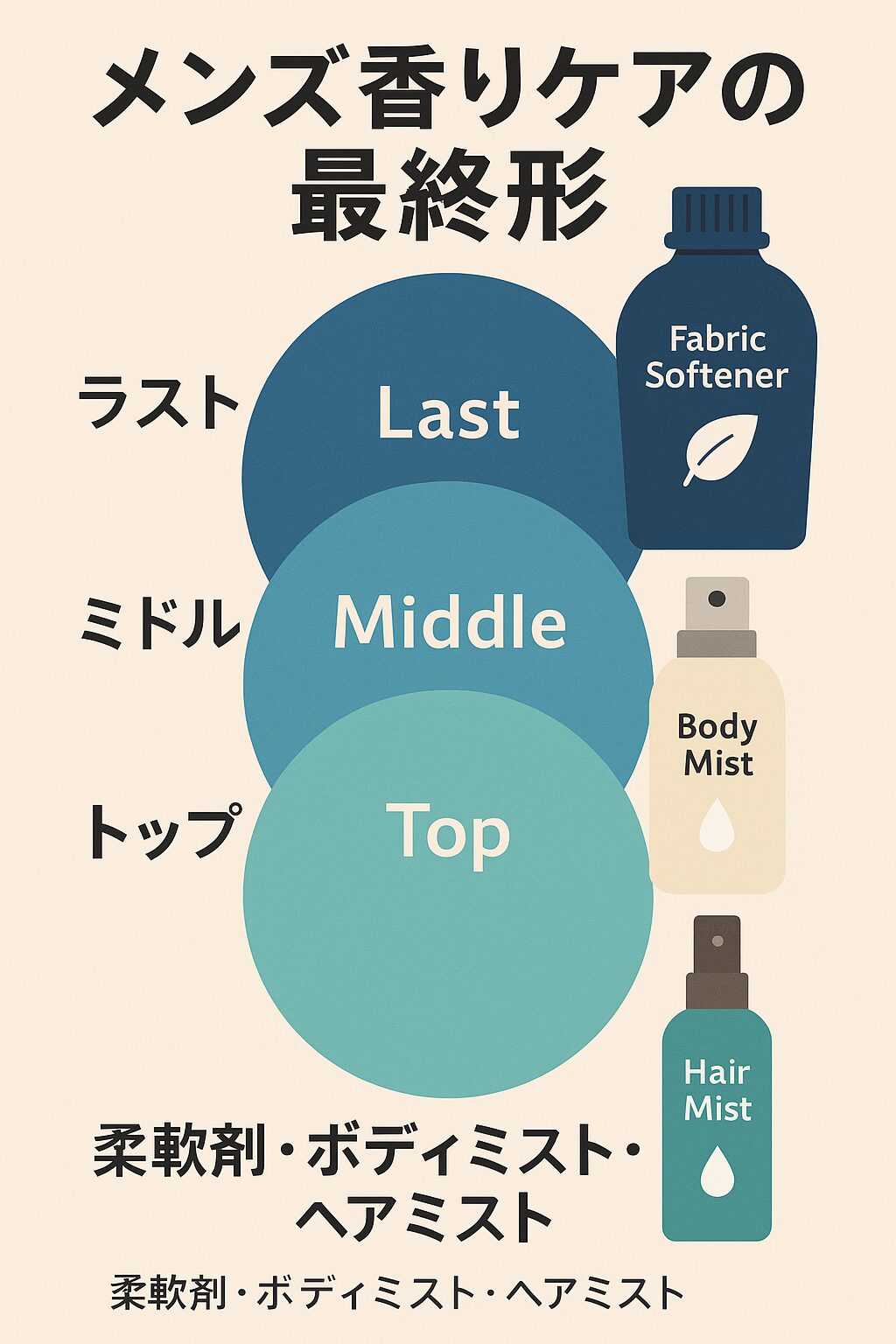 - 香りは「柔軟剤 → ボディミスト → ヘアミスト」で層を作る
