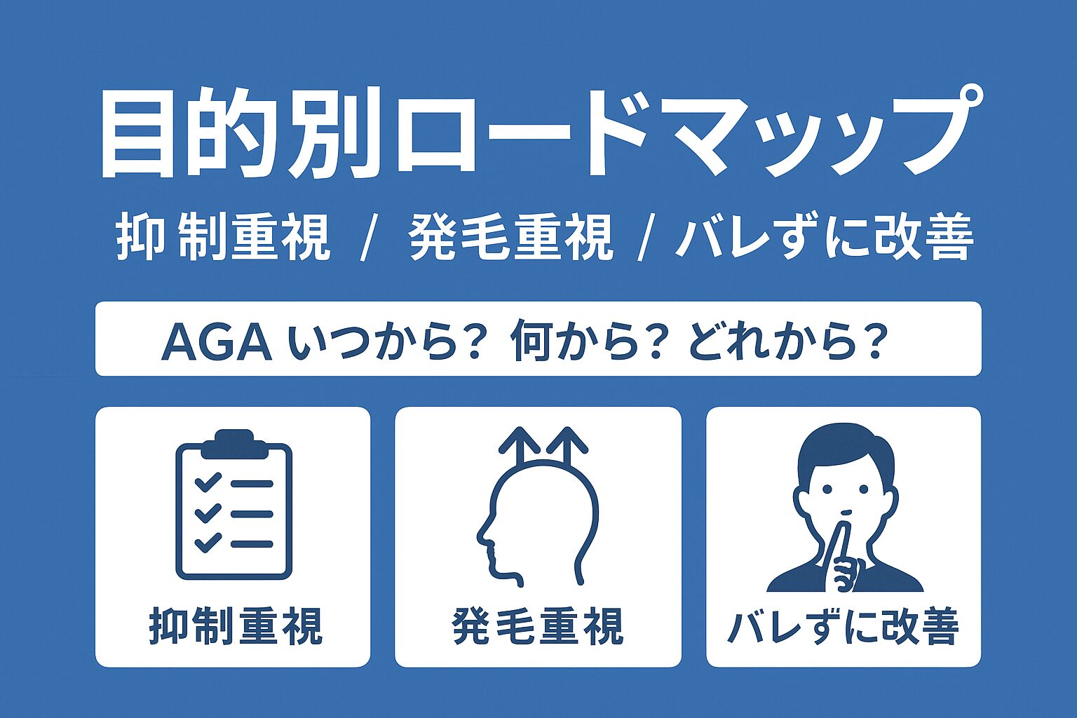 目的別ロードマップ|抑制重視/発毛重視/バレずに改善【AGA いつから・何から・どれから始める?】