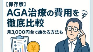 ライフスタイル 【保存版】AGA治療の費用を徹底比較|月3,000円台で始める方法も 「結局、いくらかかるの?」——最初に知りたいのは総額感と最短での始め方。本記事では、40代男性がムダなく・安全に始めるために、相場・見えないコスト・最安戦略・総額シミュを一気に把握できます。1. AGA費用の相場早見表(初回/以降/総額の目... 2025.10.16 ライフスタイル