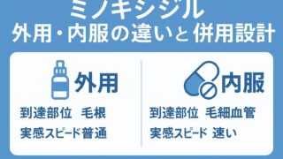 ライフスタイル ミノキシジル外用・内服の違いと併用設計【図解】 ミノキシジルは「外用」と「内服」で何が違う?到達部位・実感スピード・副作用の違い、併用の段階設計(はじめ方→見直し)、生活・栄養・睡眠のコツ、失敗例まで。費用比較・オンライン選び方・体験談への導線つき。 2025.10.16 ライフスタイル