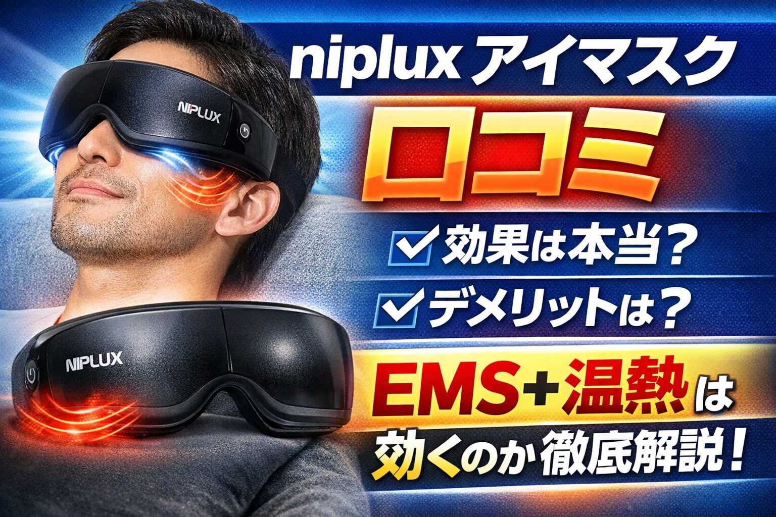 本記事では、NIPLUX(ニップラックス)のEMSアイマスク「EMS EYE RELAX」 を中心に、実際の口コミ・体験談を丁寧に分析し、