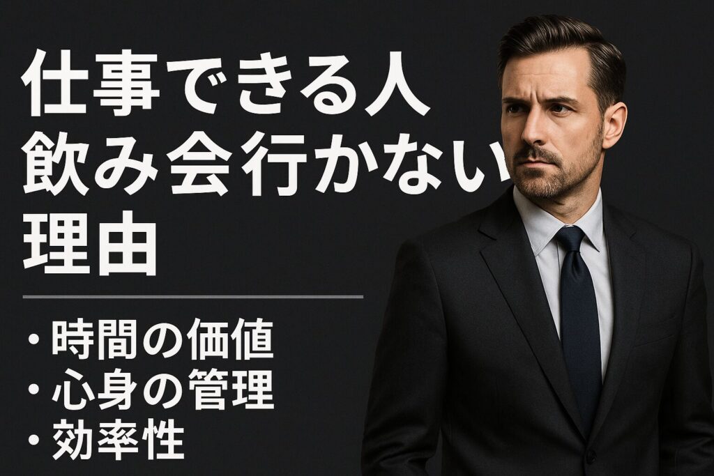 本記事では、このような社会背景も踏まえつつ、成功者の考え方や特徴、時間管理術、人間関係の捉え方などを男性向けに深掘りし、なぜ「仕事ができる人ほど飲み会に行かない」のか、その本質を徹底的に解説していきます。